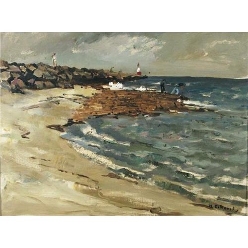 1 NICOLAI CIKOVSKY Coastal with Lighthouse 18"x 24" oil on canvas signed lower right PACKING AND SHIPPING must be handled by 3rd party shipper. CONDITION REPORT: excellent.