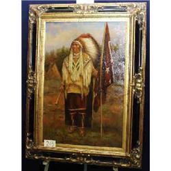 1 OIL PAINTING-TROY DENTON. HOLDING CAVALRY FLAG. X 24".