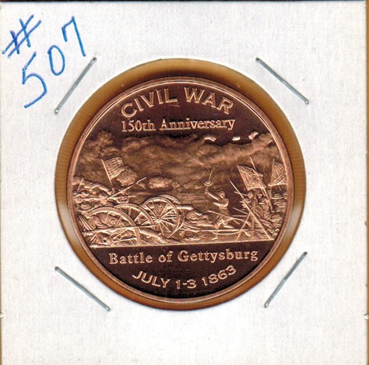 1 OUNCE COPPER .999 FINE - CIVIL WAR - 150th ANNIVERSARY - THE BATTLE of GETTYSBURG