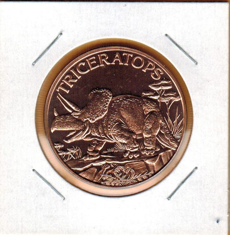 1 OUNCE COPPER - .999 FINE - DINOSAURS - TRICERATOPS