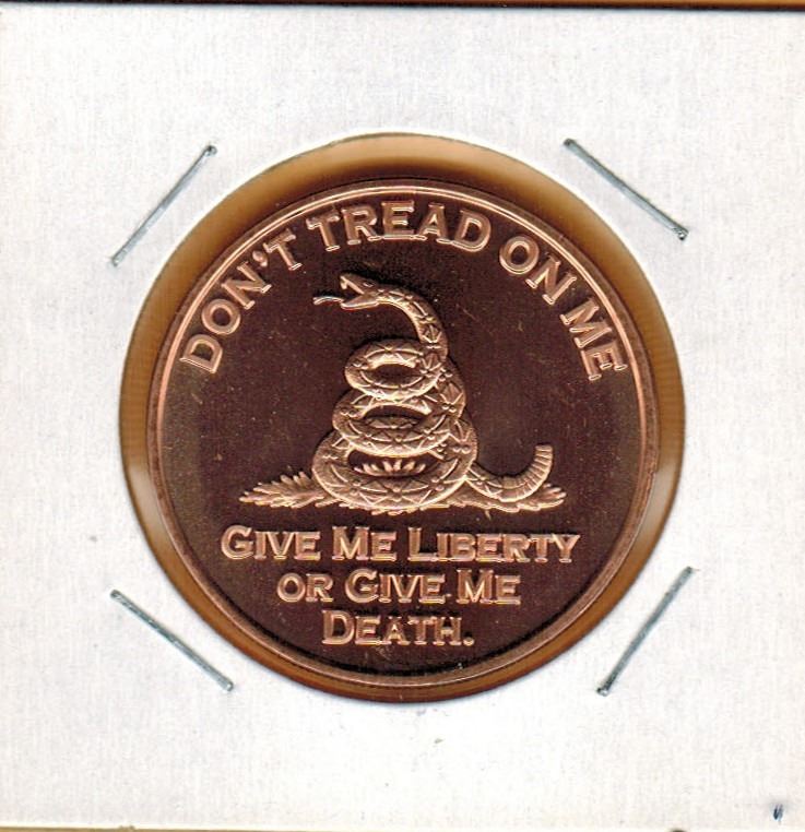 1 OUNCE COPPER .999 FINE - DON'T TREAD ON ME - Give Me Liberty or Give Me Death