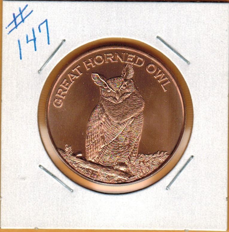 1 OUNCE COPPER .999 FINE - GREAT HORNED OWL