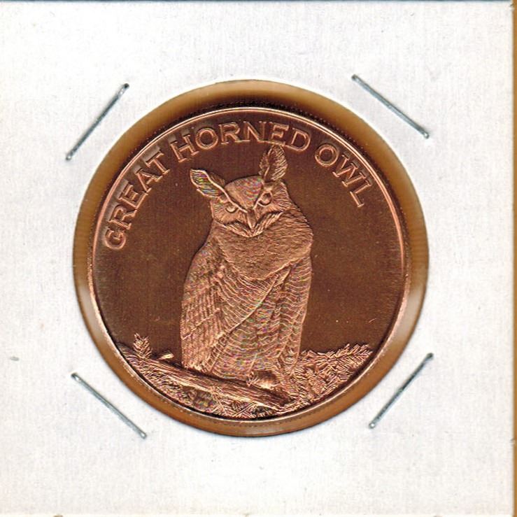 1 OUNCE COPPER - .999 FINE - GREAT HORNED OWL