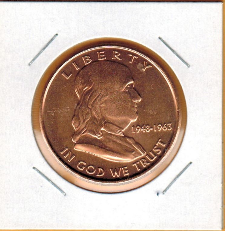 1 OUNCE COPPER - .999 FINE - US COIN DESIGN - FRANKLIN HALF DOLLAR