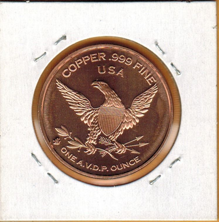 1 OUNCE COPPER - .999 FINE - US INDIAN PRINCESS COIN DESIGN
