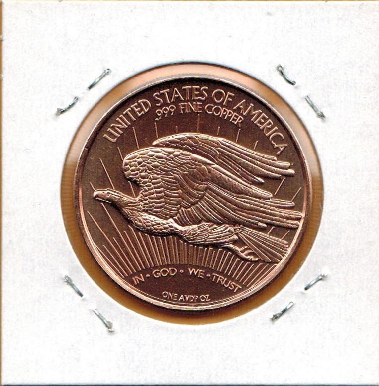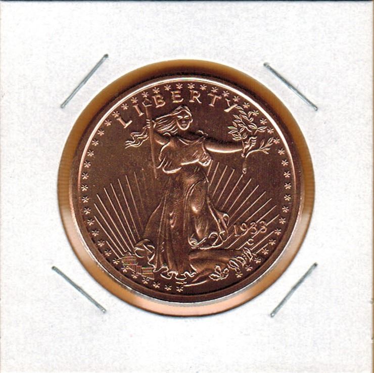 1 OUNCE COPPER - .999 FINE - US ST. GAUDENS DESIGN