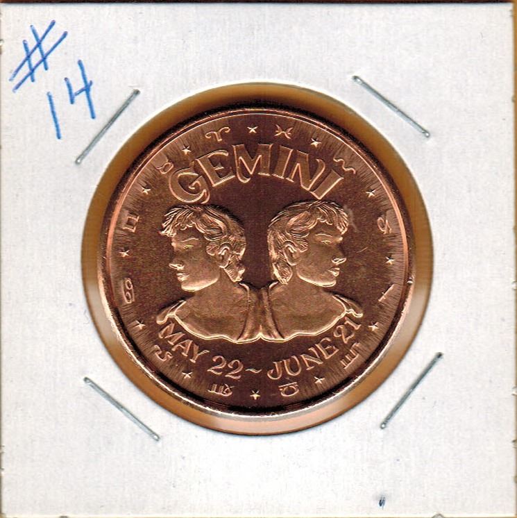 1 OUNCE COPPER .999 FINE - ZODIAC - GEMINI
