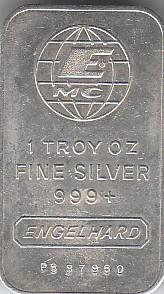 1 OUNCE ENGELHARD SILVER BAR .999 FINE