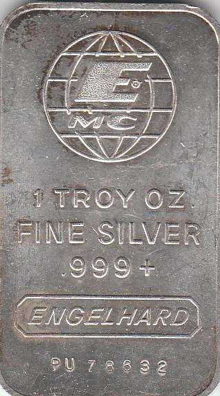 1 OUNCE SILVER BAR ENGELHARD .999 FINE