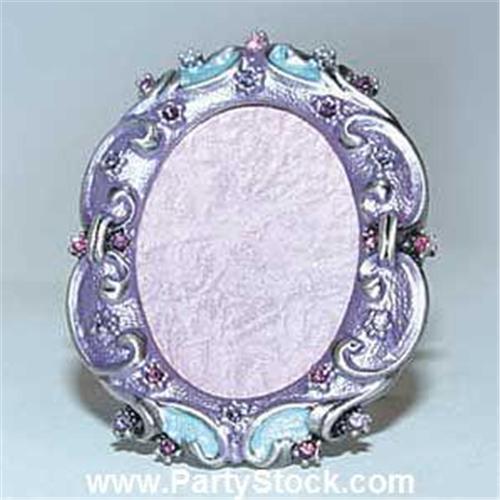 1" OVAL PHOTO FRAME 24K GOLD & CRYSTALS PURPLE
