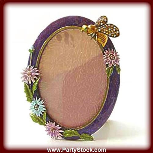 1" OVAL PHOTO FRAME 24K GOLD & CRYSTALS PURPLE