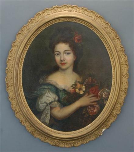 1 OVAL PORTRAIT OF A LADY 26"x21" oil on canvas, now mounted to masonite, with a giltwood frame,