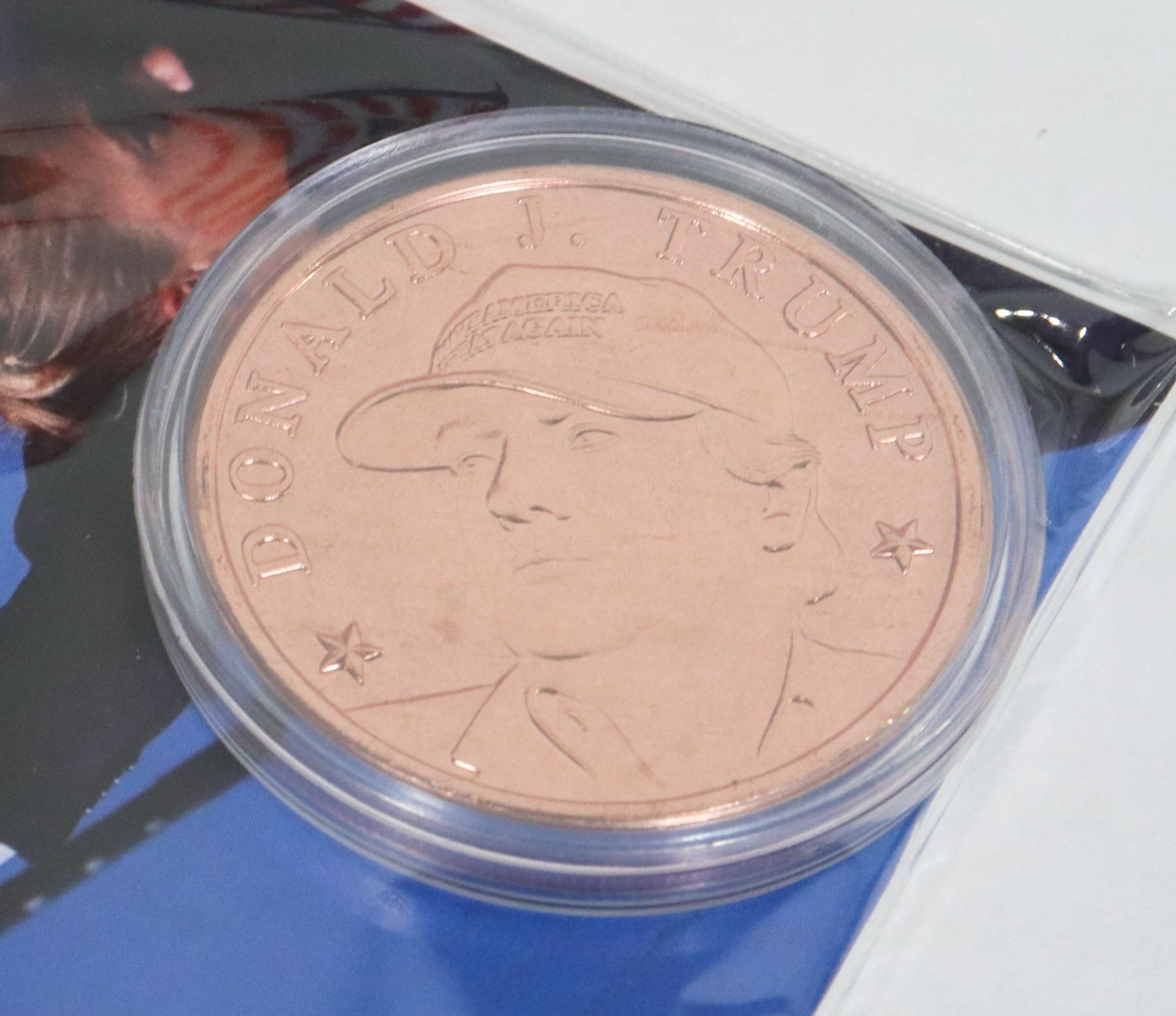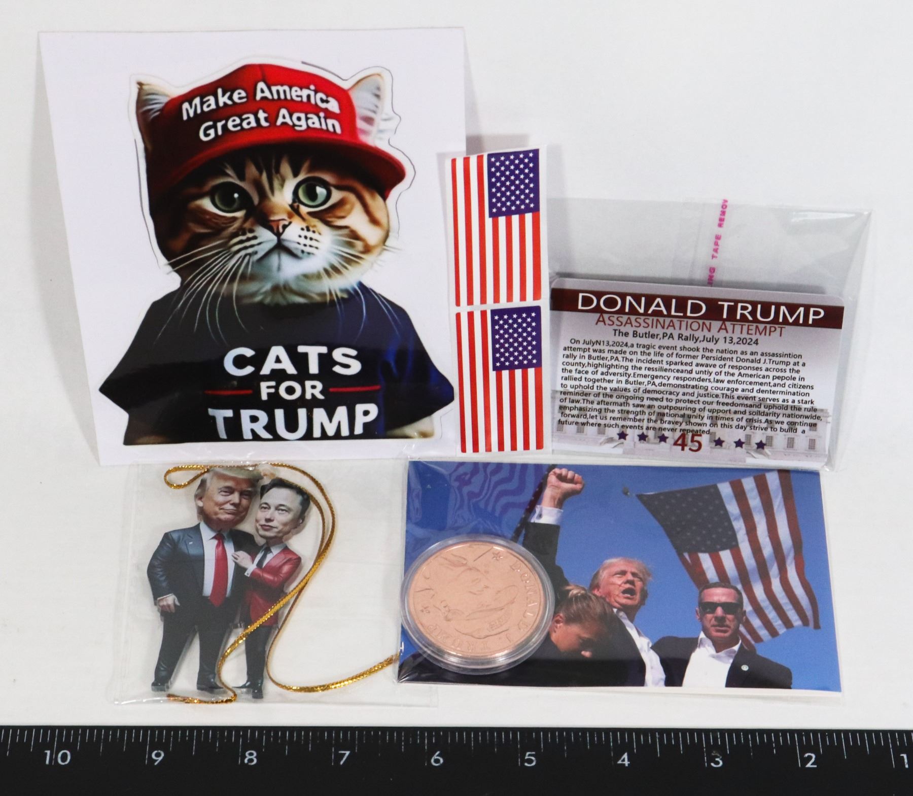 WITH CARD. COMES WITH LARGE STICKER TRUMP AND MUSK COMIC FIGURINE, COMMEMORATIVE CARD MADE OF THICK PVC