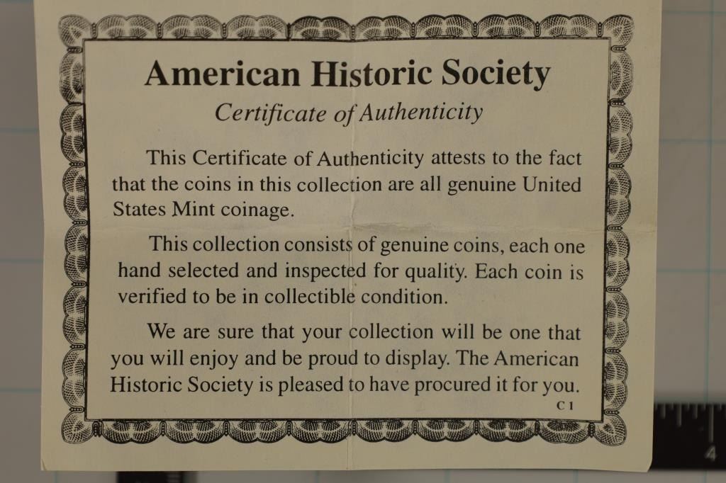BOX WITH CERTIFICATE, EDGE MARKED BY THE UNITED STATES COMMEMORATIVE GALLERY