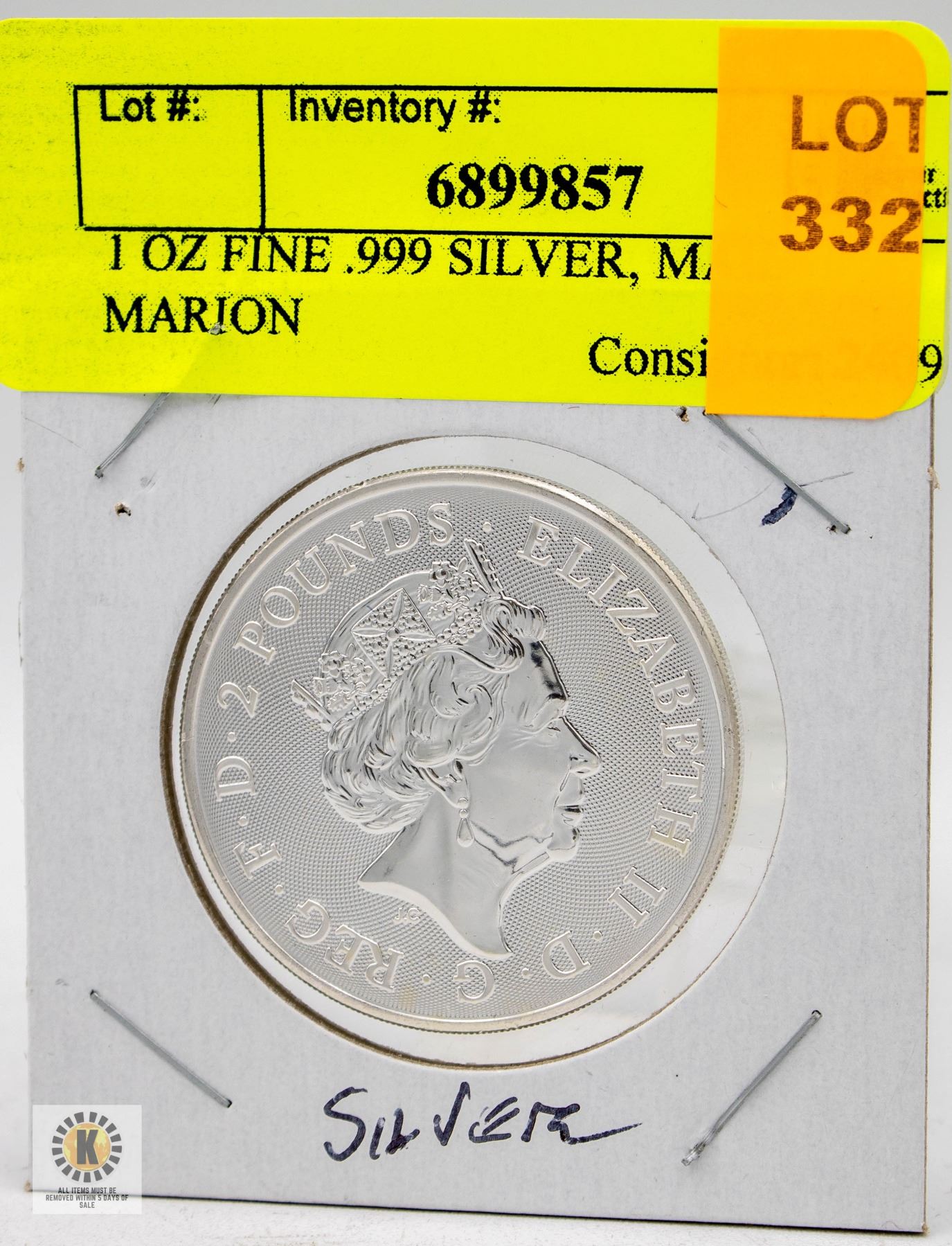 1 OZ FINE .999 SILVER, MAID MARION