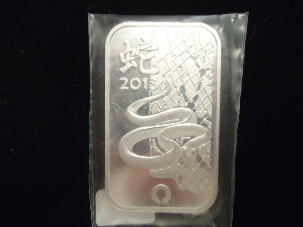 1 OZ. FINE SILVER INGOT 2013 SNAKE RAND REFINERY