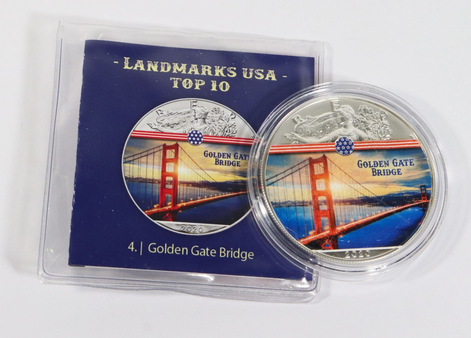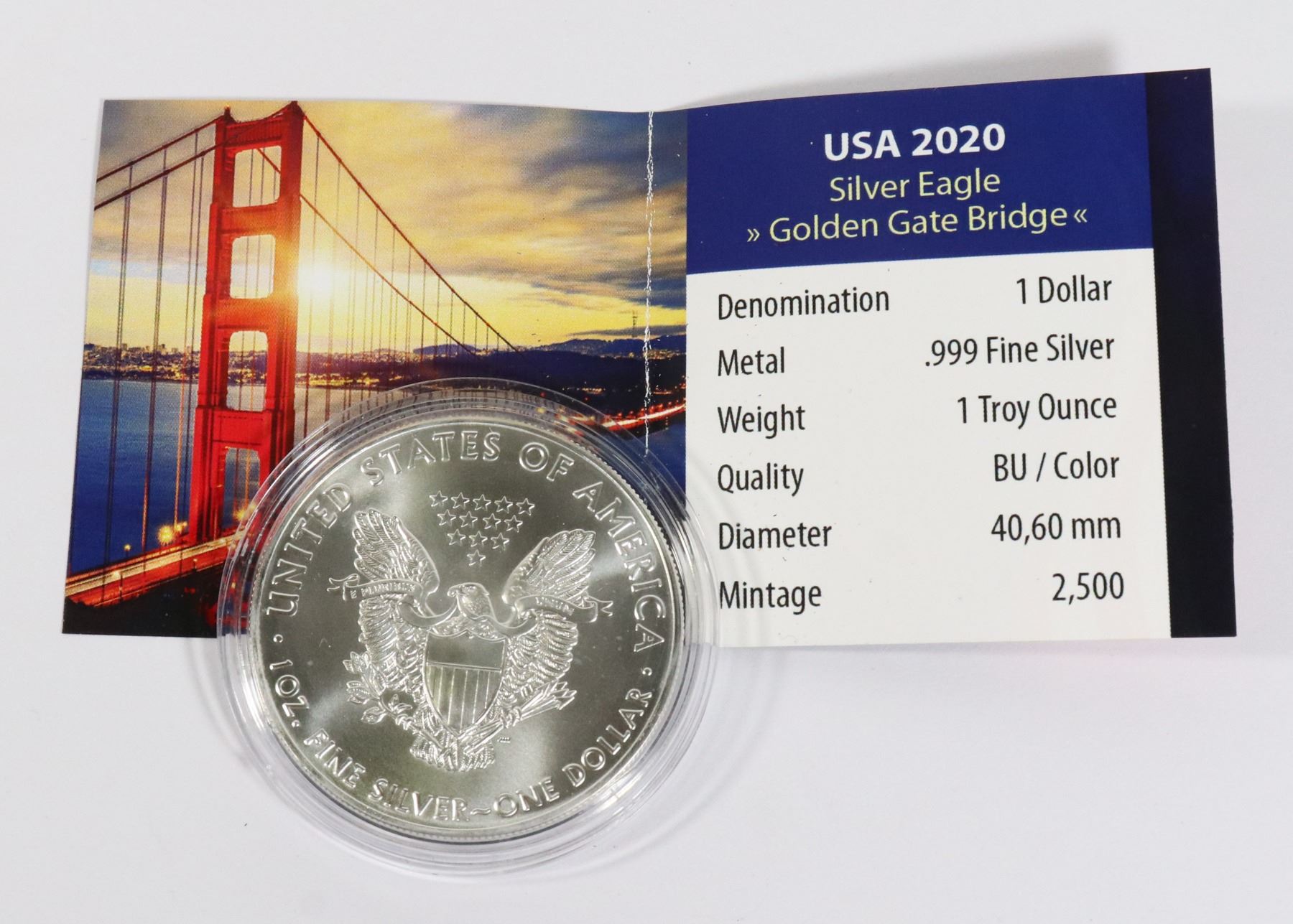 SILVER EAGLE #4 GOLDEN GATE BRIDGE. COES WITH COA