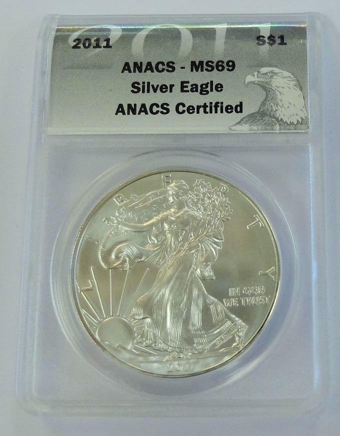 1 OZ PURE SILVER USA EAGLE 2011 ANACS MS69