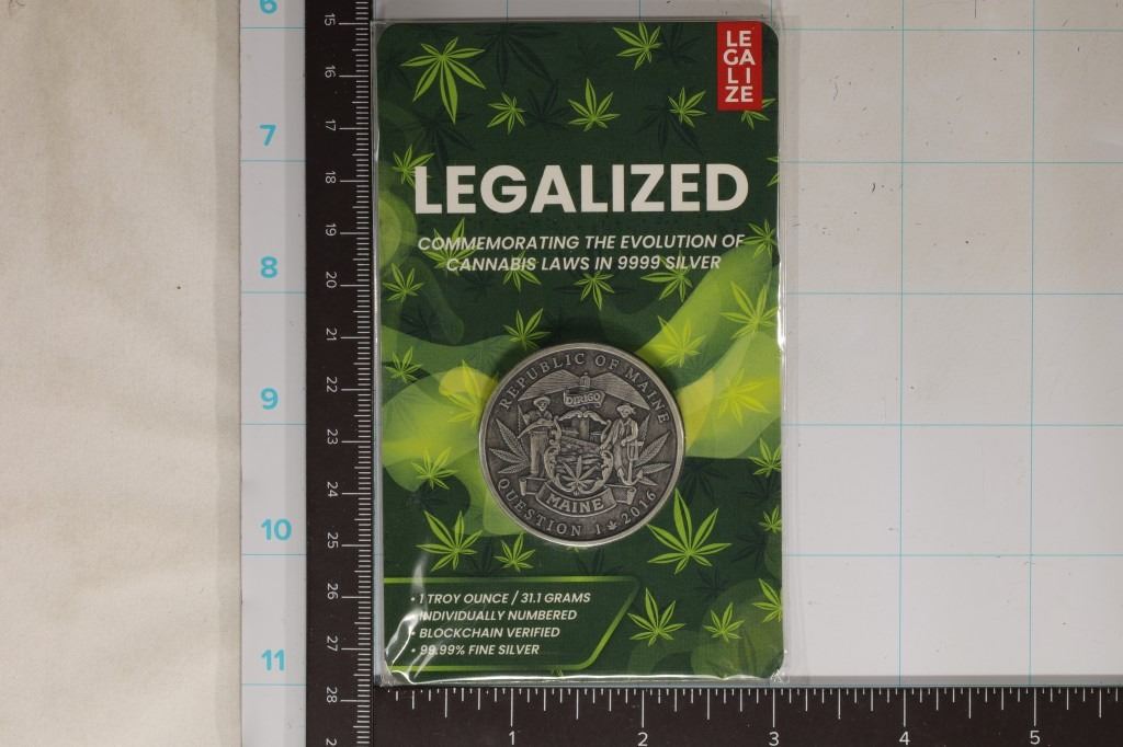 ROUND UNC IN PLASTIC SLEEVE ON CARDBOARD CARD, BRAND NEW. STATE OF MAINE. BLOCKCHAIN VERIFIED. ANTIQUE FINISH