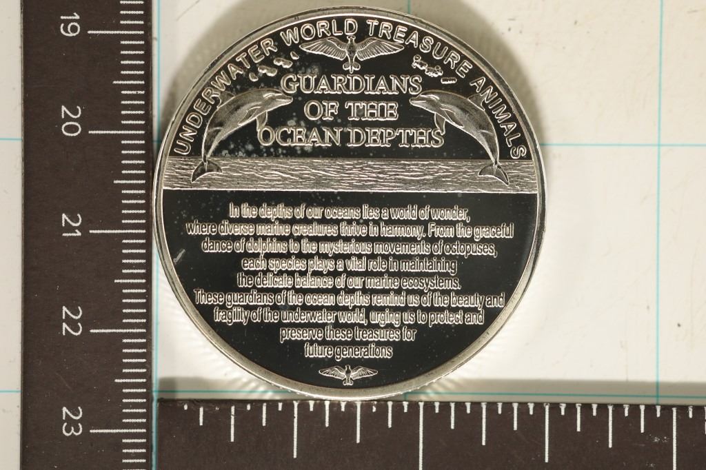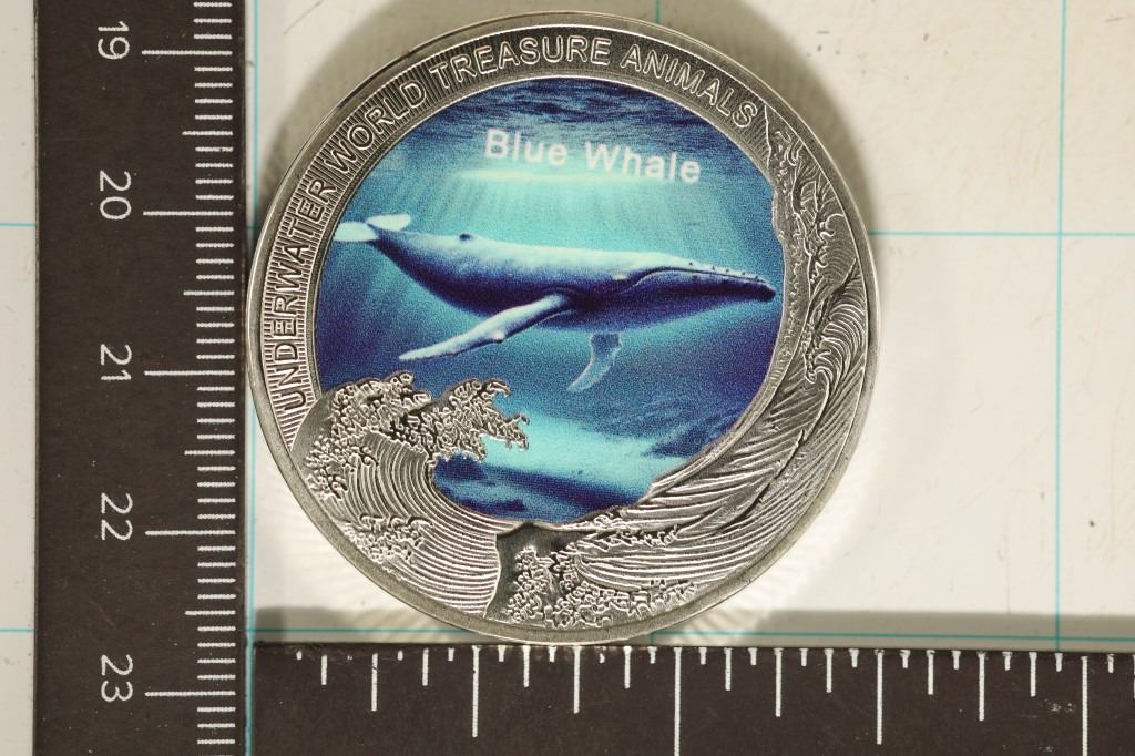 DEPTHS ROUND BLUE WHALE COLORIZED OBVERSE UNDER WATER WORLD TREASURE ANIMALS IN HARD PLASTIC CAPSULE