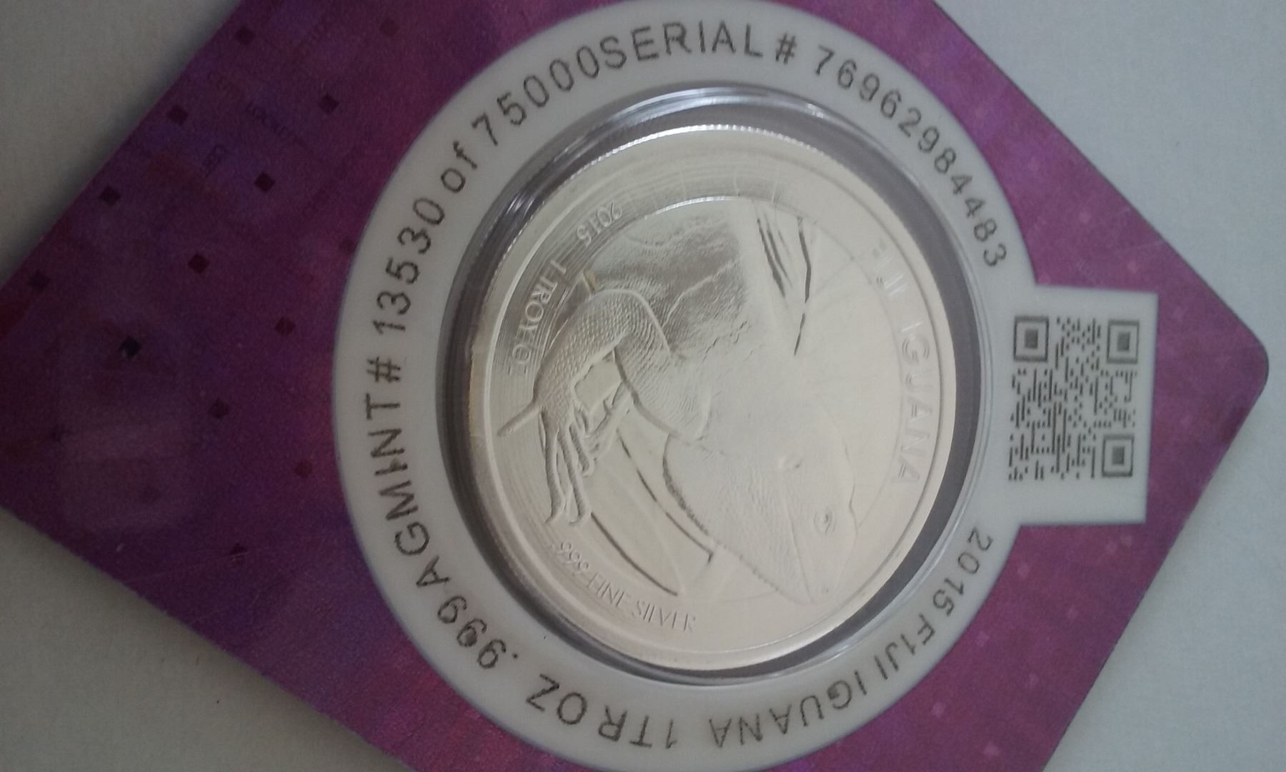 2015 Scottsdale Mint 1 OZ silver Iguana round Number 13530 of 75000