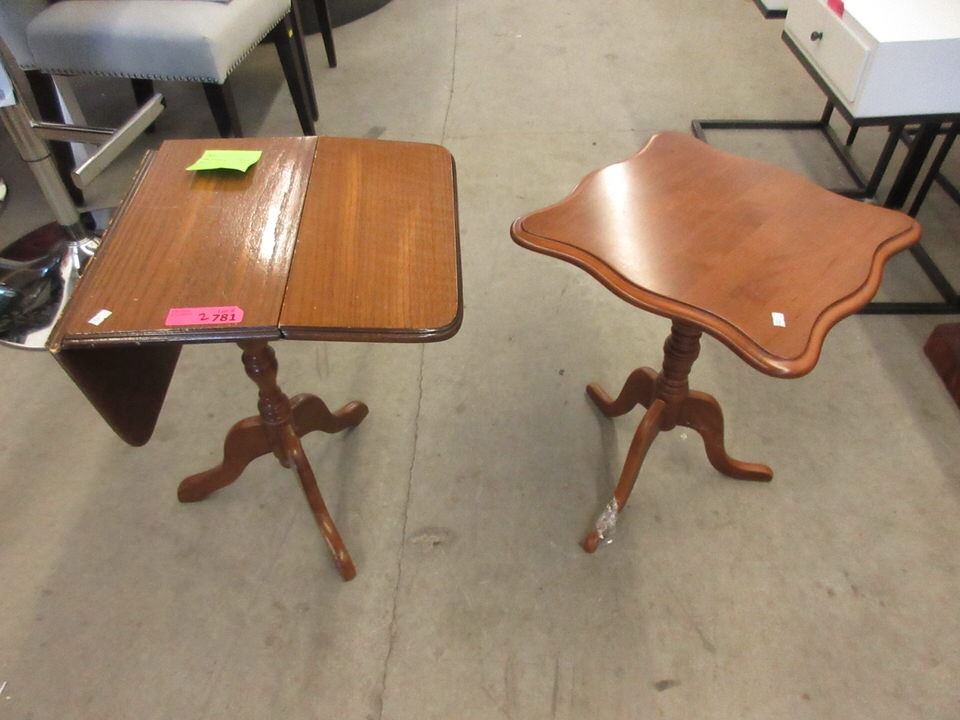 Oak is a Pembroke with fold down sides. Maple end table is 16" x 16" x 20" tall.