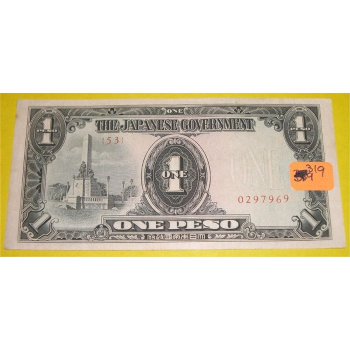 $1 One Peso World War II Japanese Occupational Currency *RARE UNC CONDITION*!! ***Coin & Currency Grades, Conditions & Values are not Safe Deposit Coins Responsibilty. Grades, Conditions & Values are determined by Consigner(s) & Buyers***