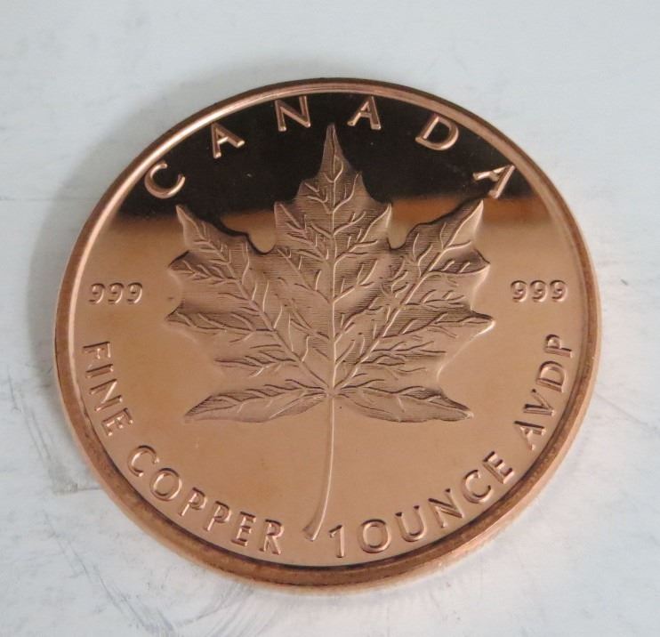 1 Ounce Canada Maple Leaf .999 Fine Copper Round
