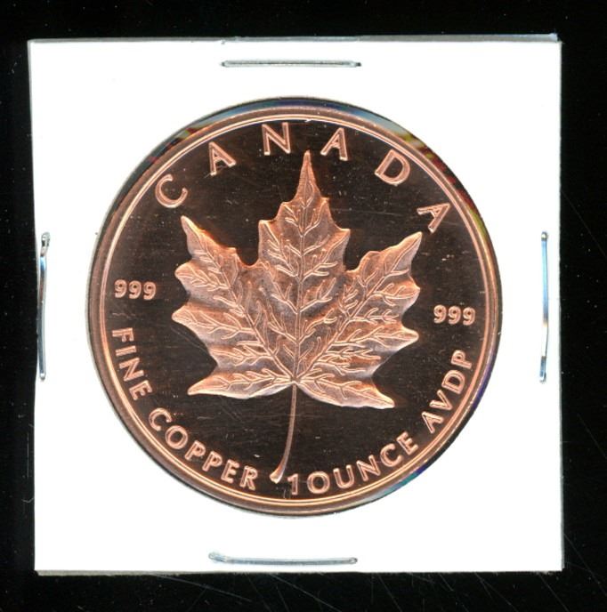 1 Ounce Canada Maple Leaf .999 Fine Copper Round