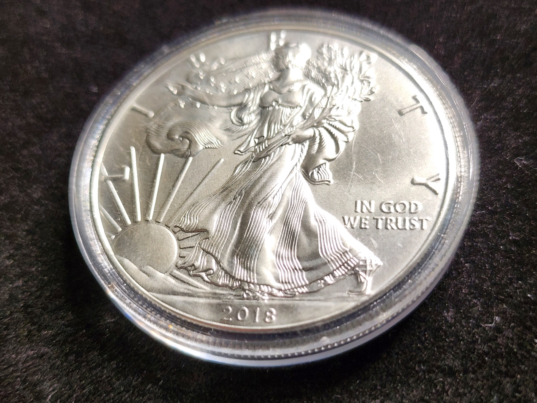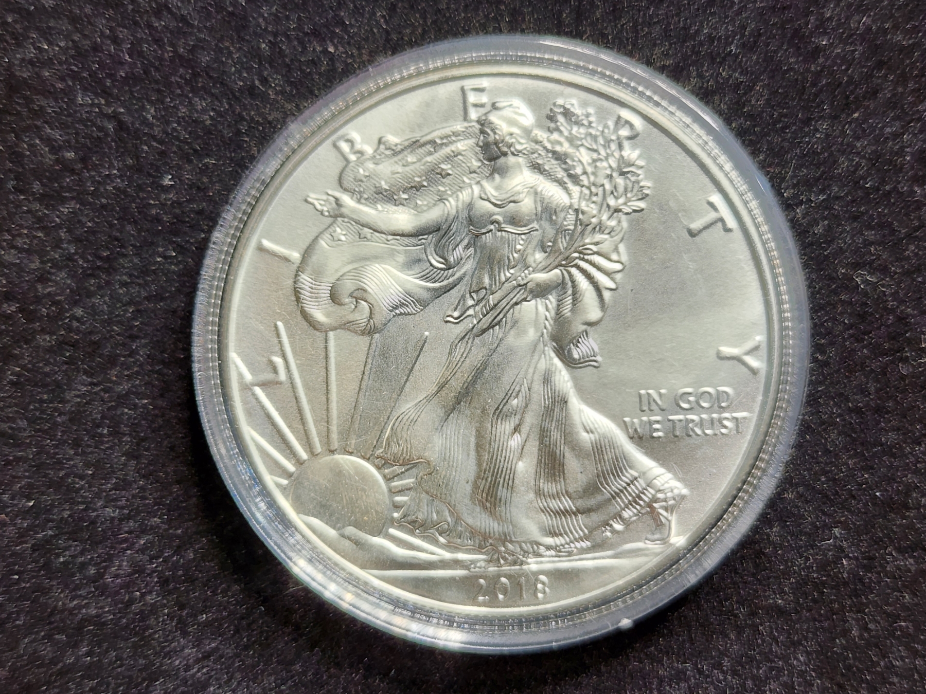 1 Oz .999 Fine Silver 2018 American Eagle Round in Capsule Protector