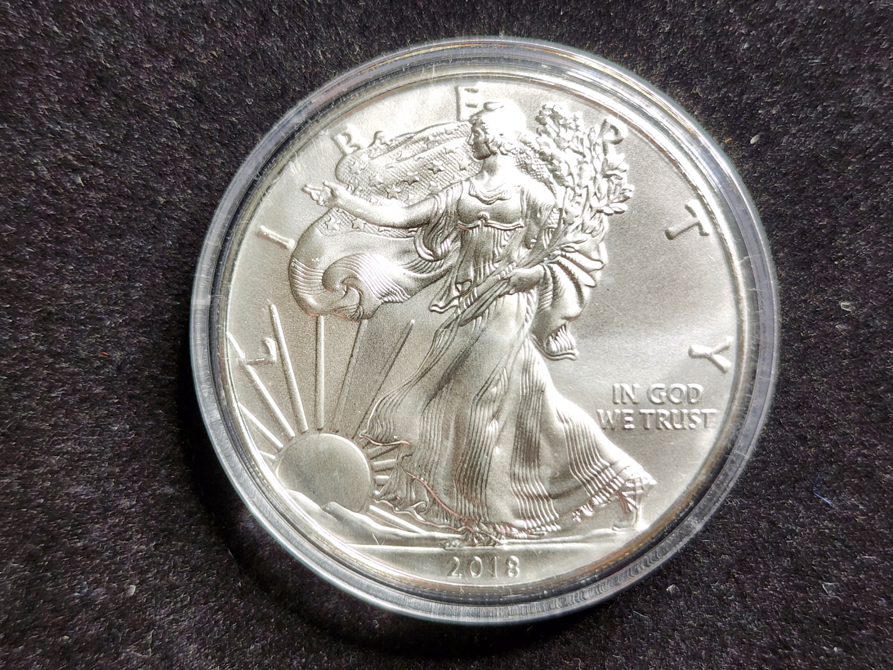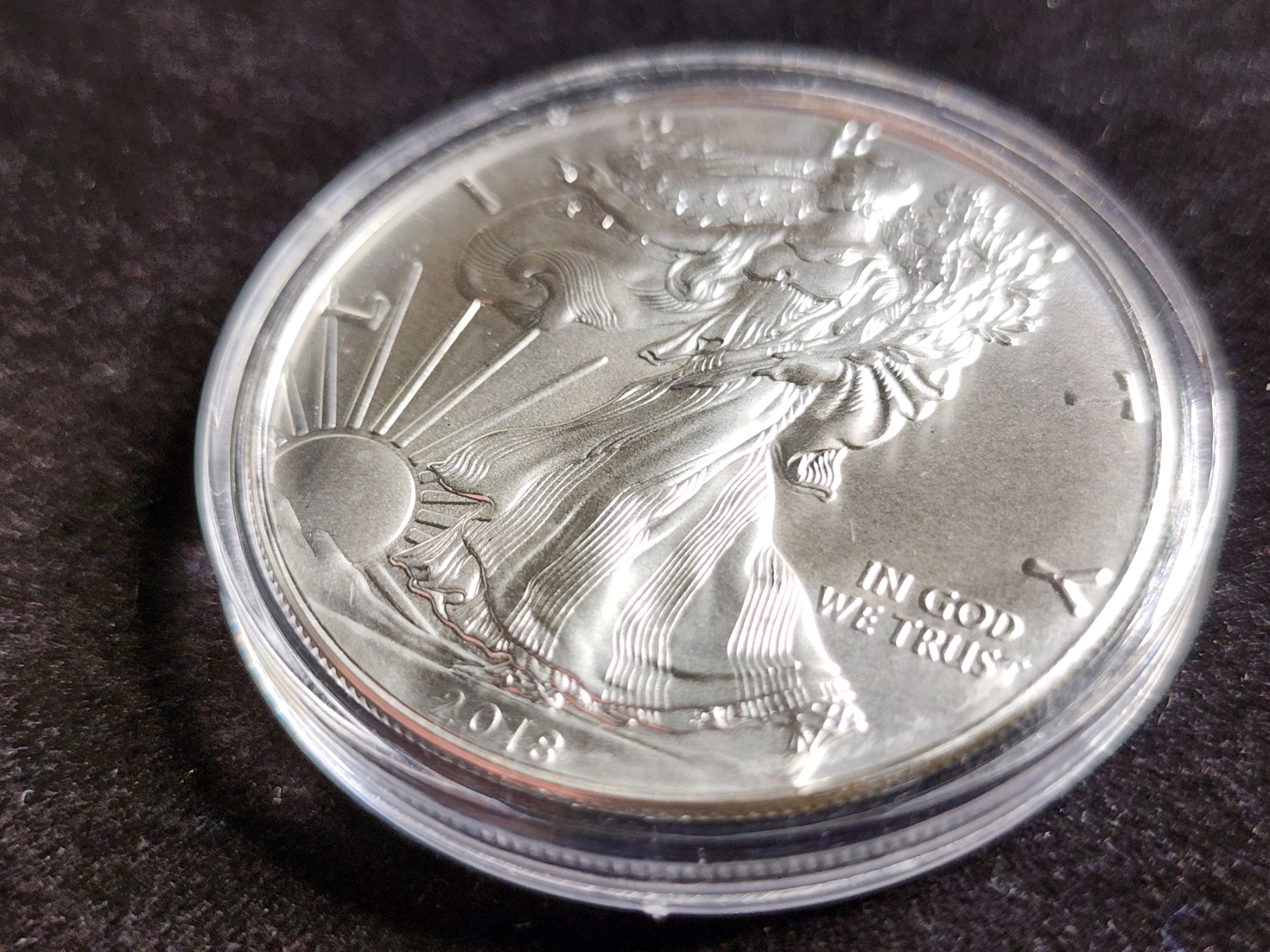 1 Oz .999 Fine Silver 2018 American Eagle Round in Capsule Protector