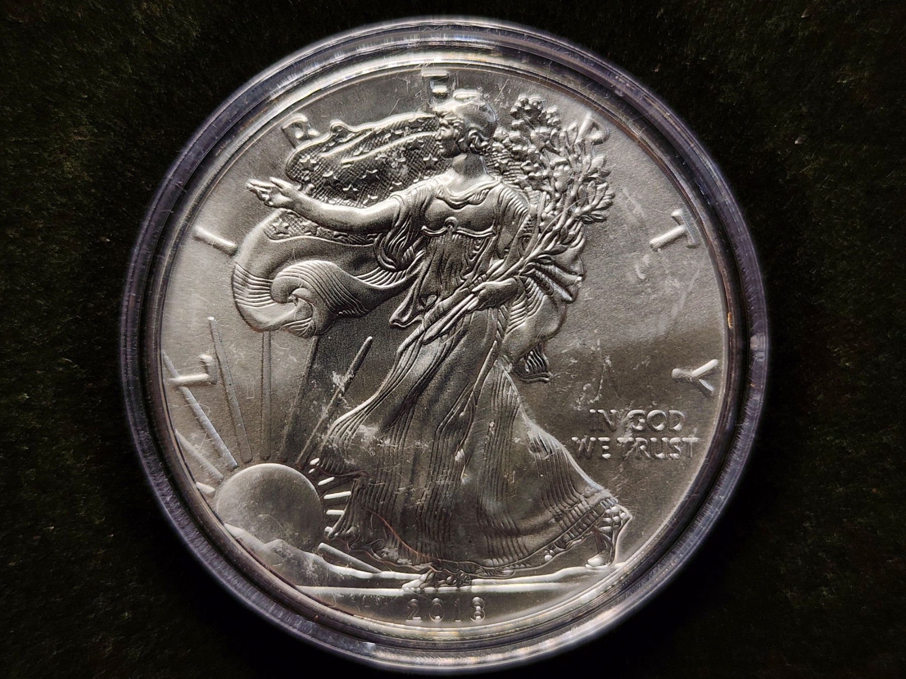 1 Oz .999 Fine Silver 2018 American Eagle Round in Capsule Protector