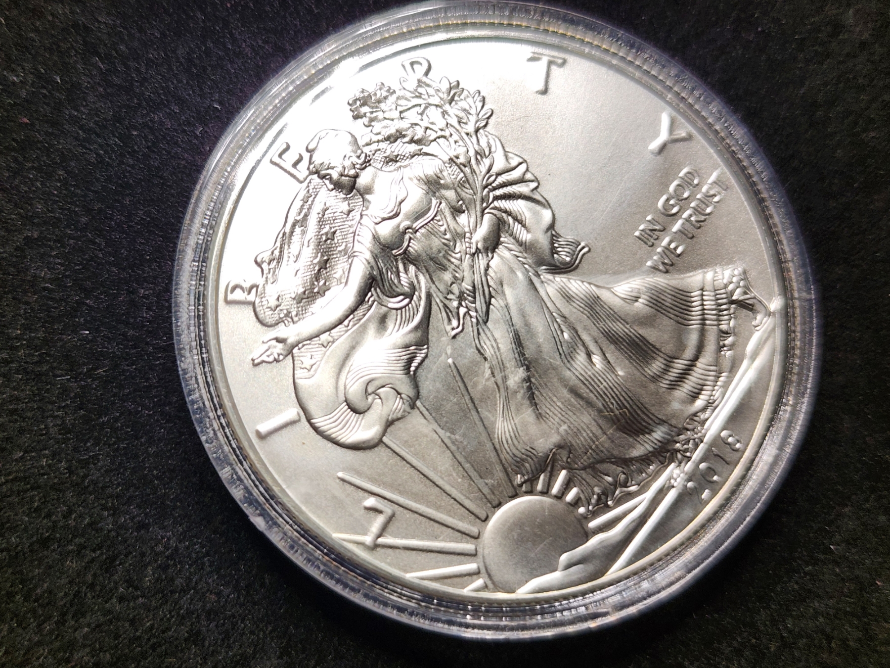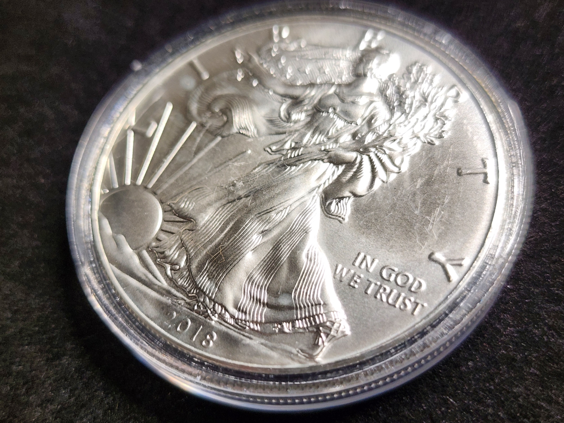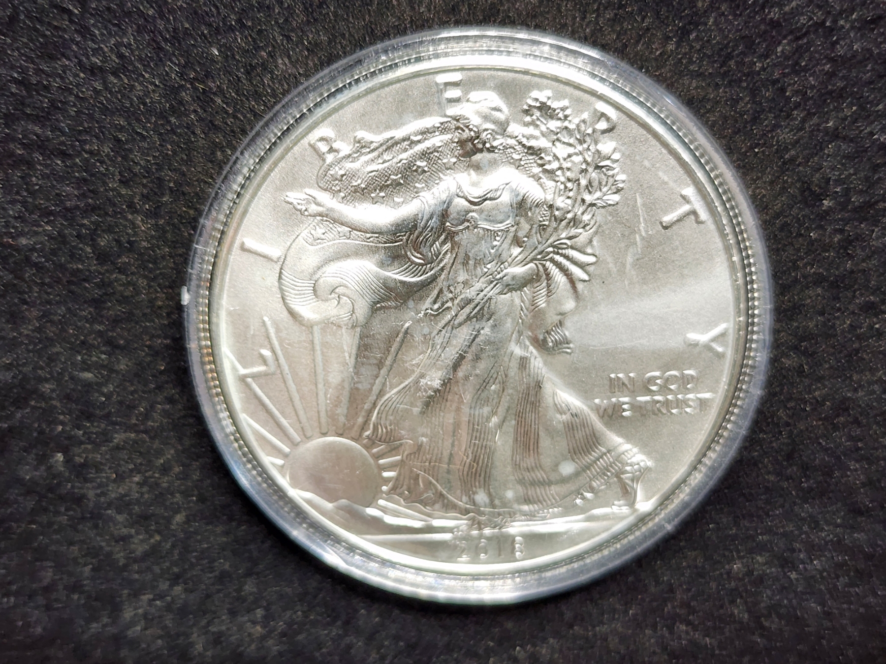 1 Oz .999 Fine Silver 2018 American Eagle Round in Capsule Protector