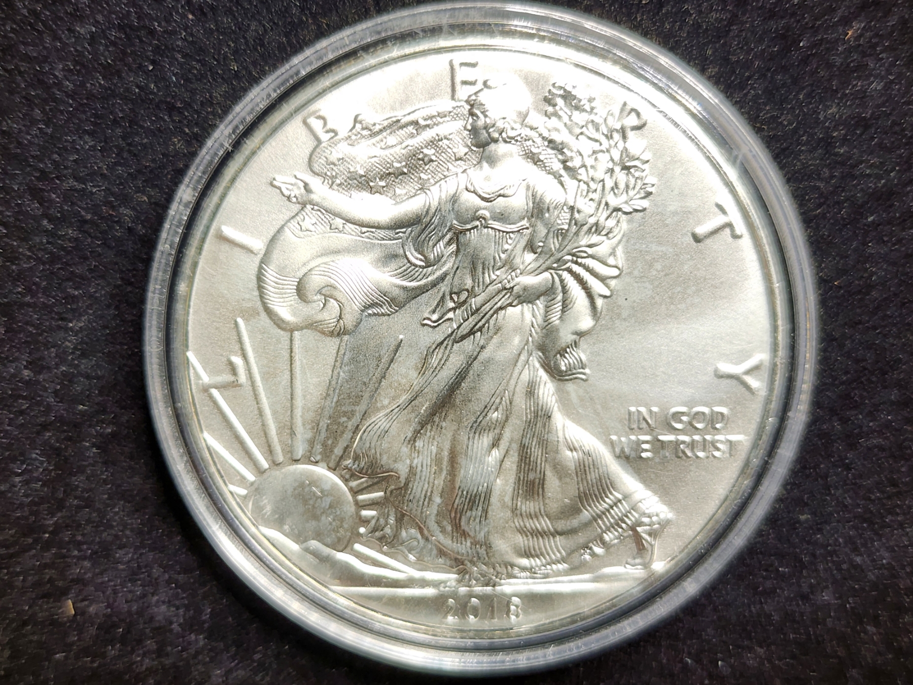 1 Oz .999 Fine Silver 2018 American Eagle Round in Capsule Protector