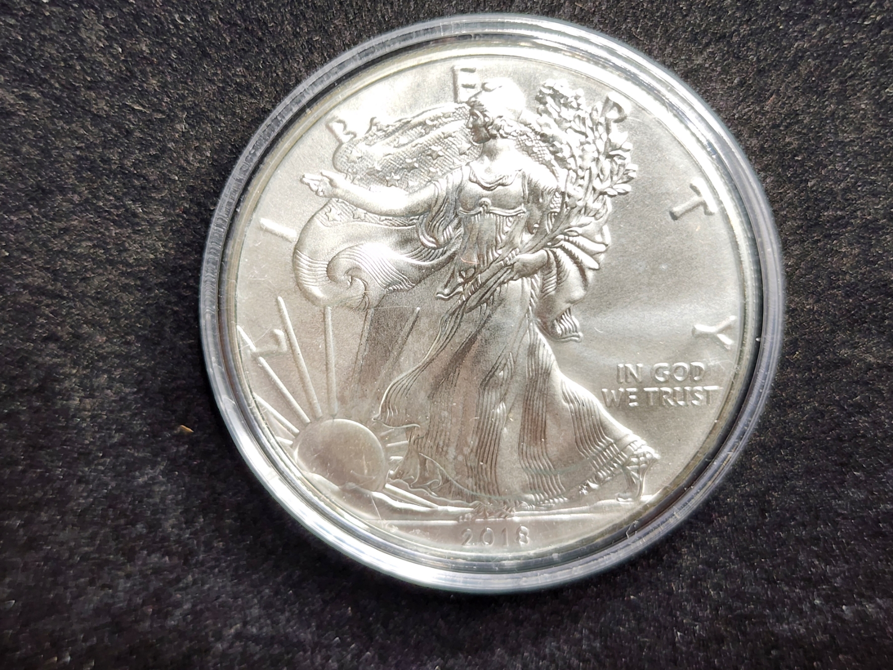 1 Oz .999 Fine Silver 2018 American Eagle Round in Capsule Protector