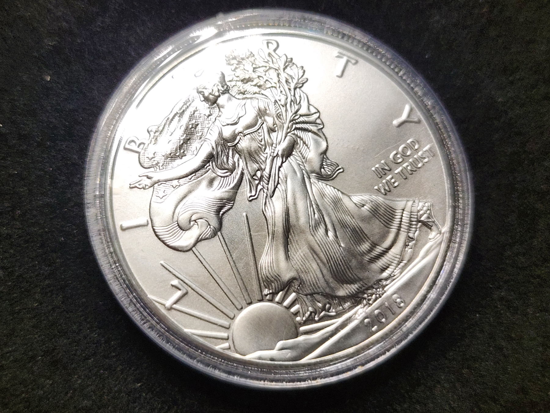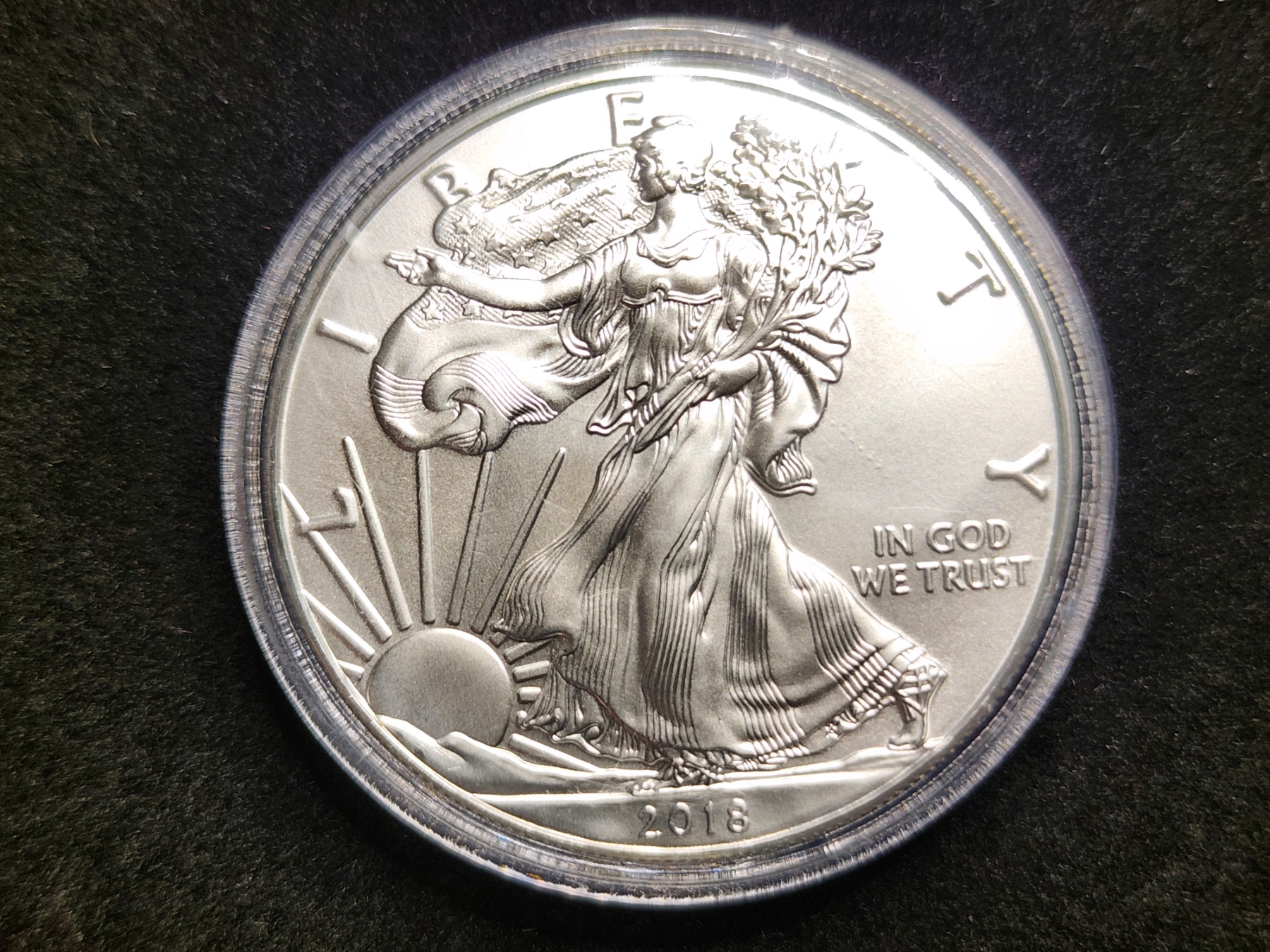 1 Oz .999 Fine Silver 2018 American Eagle Round in Capsule Protector