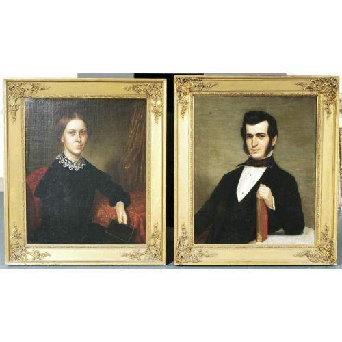 1 PAIR OF AMERICAN SCHOOL<BR>PORTRAITS<BR>each 30"x 25" oil on canvas<BR>in period frames<BR>circa 1840 <BR>CONDITION REPORT: lined.<BR>PACKING AND SHIPPING -see recommended.