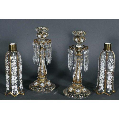 1 PAIR OF BACCARAT GILT<BR>DECORATED GARNITURES<BR>23" high<BR>late 19th century <BR>CONDITION REPORT: rubs to gilt- otherwise excellent.<BR>PACKING AND SHIPPING -$50 excluding insurance within the Continental USA only.