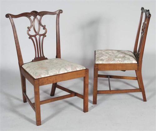 1 PAIR OF CONNECTICUT CHERRY CHIPPENDALE SIDE CHAIRS with shell carved crest and scrolled terminals, late 18th century,