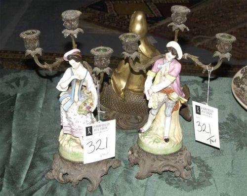 1 PAIR OF PORCELAIN FIGURAL CANDELABRA, 14" high, circa 1910,, CONDITION: excellent, no damage or repairs. PACKING AND SHIPPING BY FAIRFIELD AUCTION WITHIN CONTINENTAL USA (excluding insurance) $35