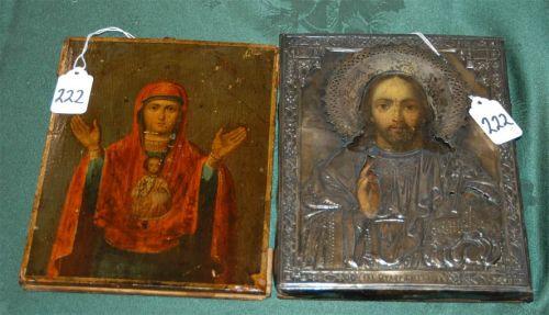 1 PAIR OF RUSSIAN ICONS, one silver mounted, both about 9"x7", packing and shipping $30