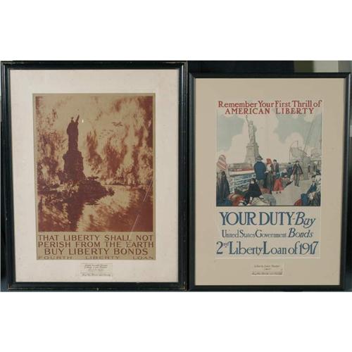 1 PAIR OF WWI BOND POSTERS with images of The Statue of Liberty each 28"x 18" sight framed PACKING AND SHIPPING must be handled by 3rd party shipper. CONDITION REPORT: stains, tears.