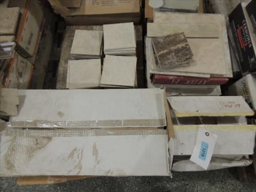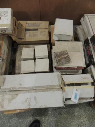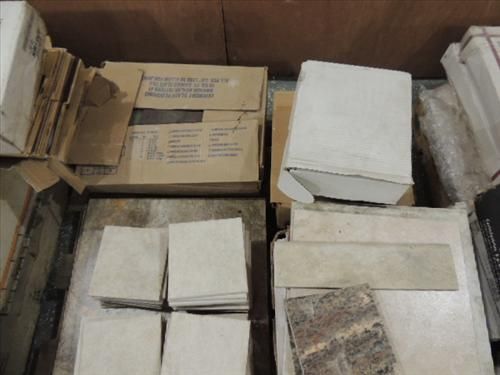 1 PALLET, 12 BOXES ROCK & TERRA COTTA TILES, ASSORTED STYLES & SIZES. AS SHOWN. VIEW PICTURE FOR DETAIL.