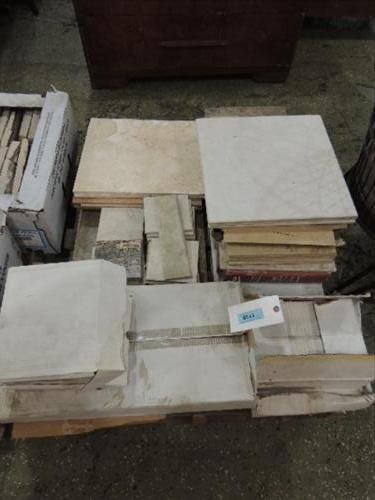 1 PALLET, 12 BOXES ROCK & TERRA COTTA TILES, ASSORTED STYLES & SIZES. AS SHOWN. VIEW PICTURE FOR DETAIL.