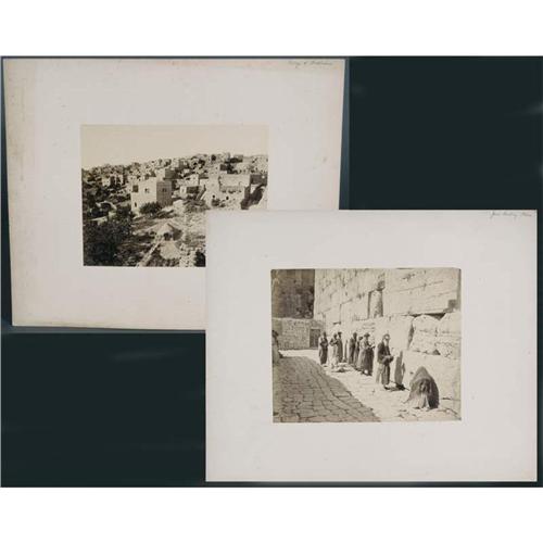 1 PETER BERGHEIM AND OTHERS The Holy Land collection of 70 albumen prints, 52 by Bergheim 8"x 9 1/2" each 14 by Felix Boufils and 4 by Rockwood, NY PACKING AND SHIPPING must be handled by 3rd party shipper. CONDITION REPORT: Bergheims excellent with some stains, foxing; others with losses to mounts, some stains, toning, foxing.