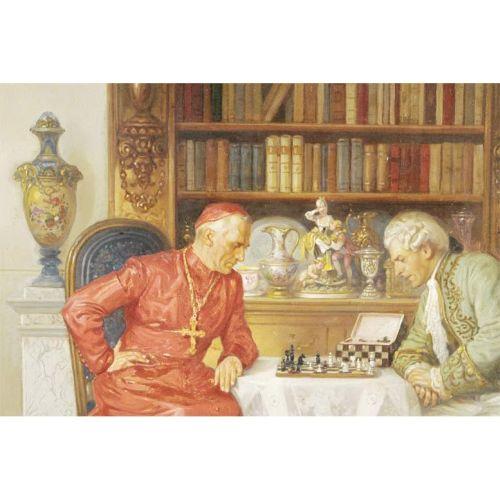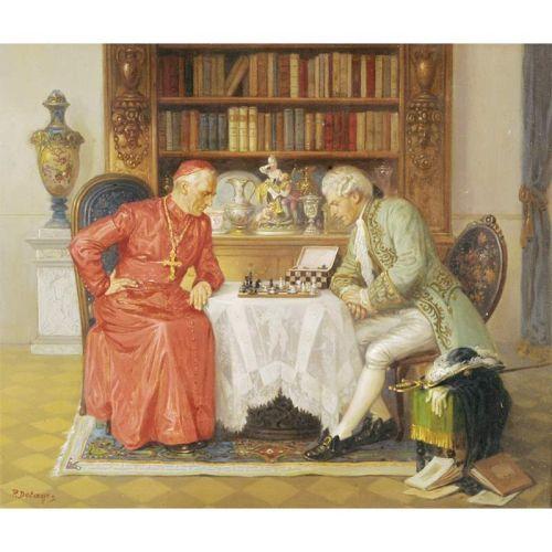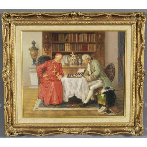 1 PIERRE DELAGE<BR>The Chess Match<BR>15"x 18" oil on masonite <BR>CONDITION REPORT: excellent.<BR>PACKING AND SHIPPING -see recommended.