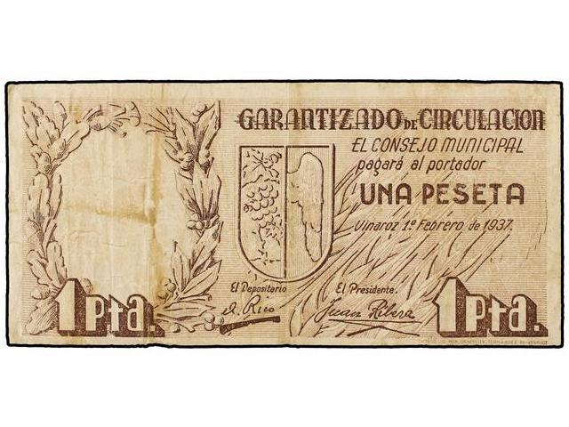 1 Peseta. 1 Enero 1937. C.M. de VINAROZ (Castellón). Nº 000576. Mont-1639B; TV-1539. MBC.