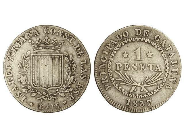 1 Peseta. 1837. BARCELONA. P.S. Cal-258. MBC-/MBC.
