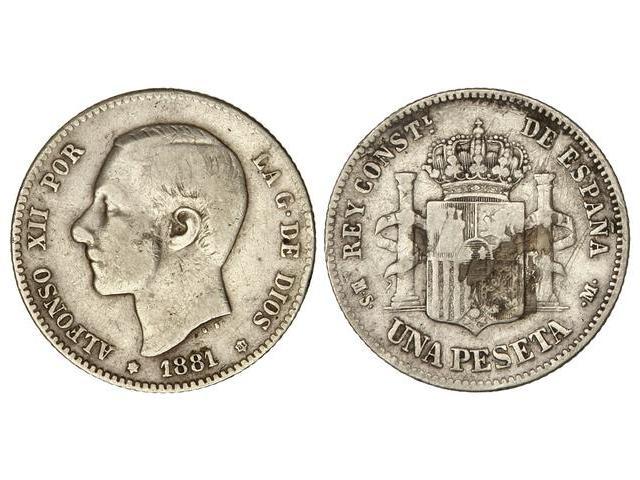 1 Peseta. 1881 (*1_-81). M.S.M. (Rayitas y restos de adhesivo en reverso). BC+.