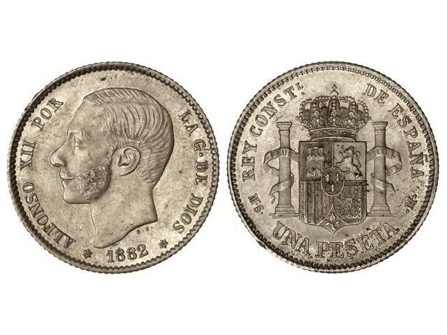 1 Peseta. 1882 (*18-82). M.S.-M. Brillo original. (Golpecito en gráfila del reverso). RARA ASÍ. EBC/EBC-.